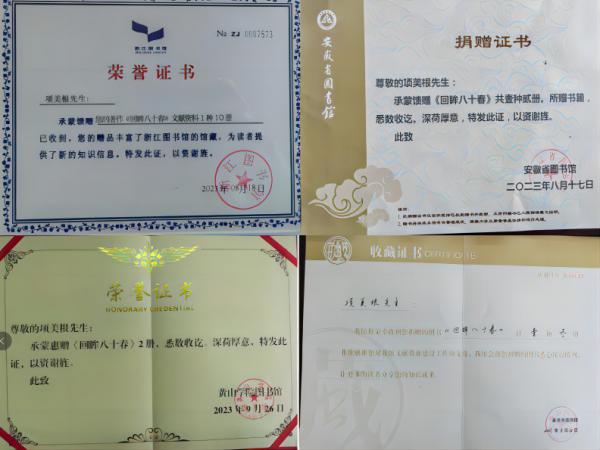 2022年年底,公司終身名譽董事長項美根個人著作《回眸八十春》出版了,《回眸八十春》記述了項美根一輩子堅持做好一件事,創(chuàng)新、創(chuàng)造、創(chuàng)業(yè)的一生。他一生坎坷波折,很有時代特點,五十歲下海創(chuàng)業(yè)的經(jīng)歷更是筆難能可貴的財富,給人啟發(fā)。他在自己所創(chuàng)辦的企業(yè)里把閥門的”科研”與“制造”直接融為一體,在科研中搞生產(chǎn)制造,在生產(chǎn)制造中搞科研,這種嶄新的科學(xué)社會實踐理念,值得全社會借鑒。他身上有著新時代弘揚和踐行的“工匠精神”,值得大眾學(xué)習(xí)和贊揚。項工出書后的*件事就是將作品回饋家鄉(xiāng)和社會,項工先后以個人名義向安徽省圖書館、浙江省圖書館、黃山市圖書館、天津圖書館、金華市圖書館、屯溪區(qū)圖書館、浦江縣圖書館、浙江大學(xué)圖書館、浙江工業(yè)大學(xué)圖書館、黃山學(xué)院圖書館、浙江浦江中學(xué)圖書館等捐贈書籍。各地圖書館接收圖書饋贈后均表示悉心收藏,供讀者閱覽,并向項美根董事長頒發(fā)捐書證書。