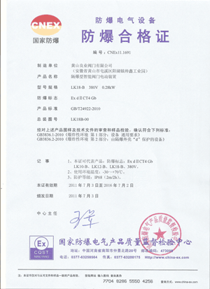 文章詳情黃山良業(yè)閥門有限公司自行研發(fā)的品牌產(chǎn)品“立美克”lk系列非侵入式智能型閥門電裝,目前在南陽國家防爆電氣設(shè)備檢督檢測中心,成功地按國標(biāo)規(guī)定進行了最高防護等級ip68的防塵試驗和水下潛水試驗,結(jié)論:合格。該產(chǎn)品還同時按國家標(biāo)準(zhǔn)規(guī)定的要求,成功地進行了一系列防爆試驗,取得了該所頒發(fā)的最高級別的防爆合格證,防爆等級為:diict4。