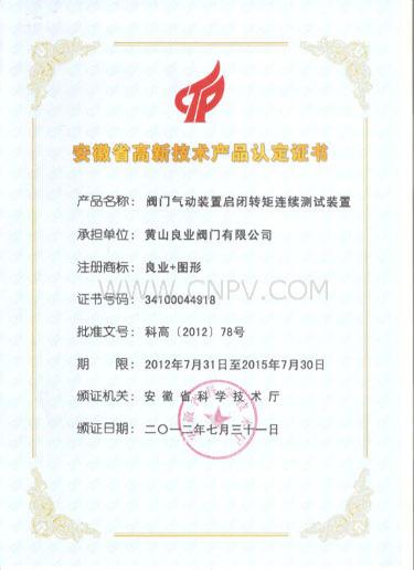 黃山良業(yè)閥門榮獲2012年度省科技廳高新產(chǎn)品認定