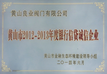 2014年6月,黃山市金融生態(tài)環(huán)境建設(shè)領(lǐng)導(dǎo)小組研究決定向黃山良業(yè)閥門有限公司授牌為“2012-2013年度黃山市銀行信貸誠信企業(yè)” 。